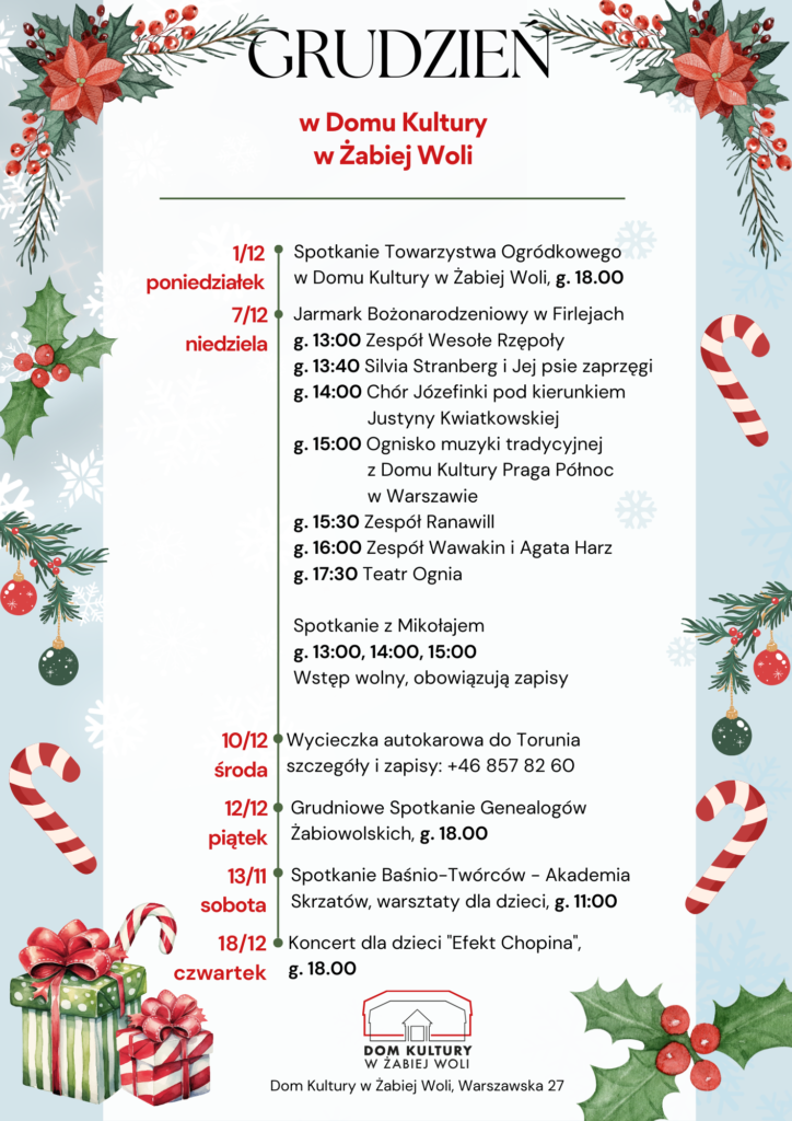 GRUDZIEŃ 2025 w Domu Kultury w Żabiej Woli